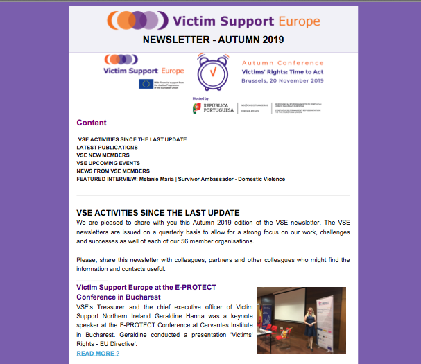 Below you can find VSE's publications. VSE also has a knowledge database of over 800 publically accessible documents relating to victims of crime, which is fully searchable and filtered. Access is available to members of VSE. Click here, if you are interested in becoming a member and supporting victims around the world.