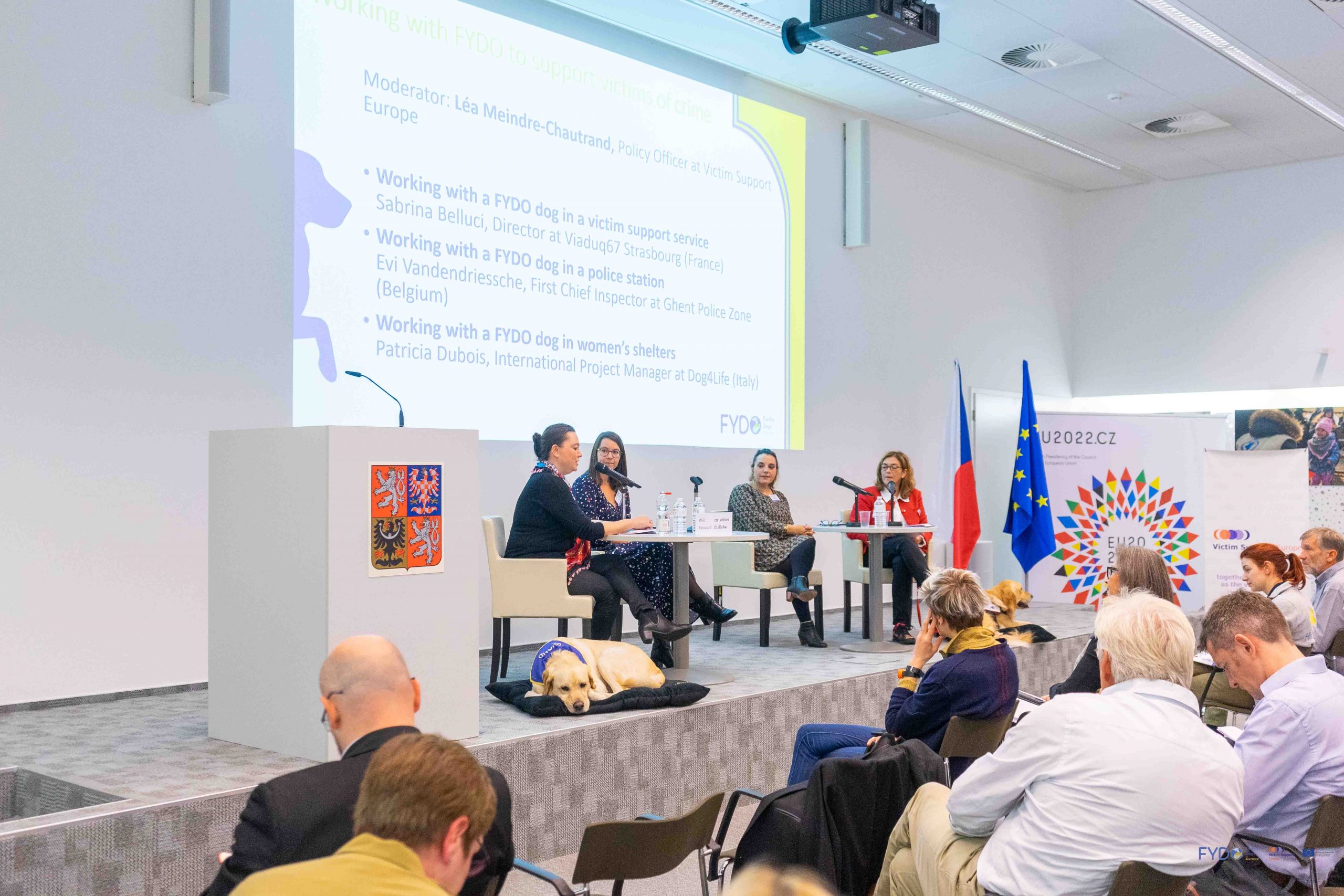 Based on the work of the Courthouse Dogs Foundation in the US, VSE is leading the first European project to train and deploy at least 5 dogs in Belgium, Italy and France to support vulnerable victims during criminal proceedings: FYDO – Facility Dogs in Europe. Facility Dogs (FYDO) are carefully selected and highly trained by specialist organisation and handled to support vulnerable victims in their recovery.
